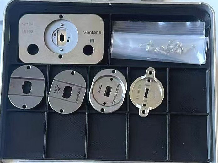 The device comes equipped with a complete set of interferometer fixtures, primarily including12F/16F interferometer fixtures and multiple adapters such as?MT Ferrule Fixture, MPO Connector Fixture?MMC Connector and MMC Ferrule Fixtures, which can meet the measurement requirements of various single- and multi-core connectors for end users. Additionally, fixtures of various specifications are available as optional accessories or for customization.