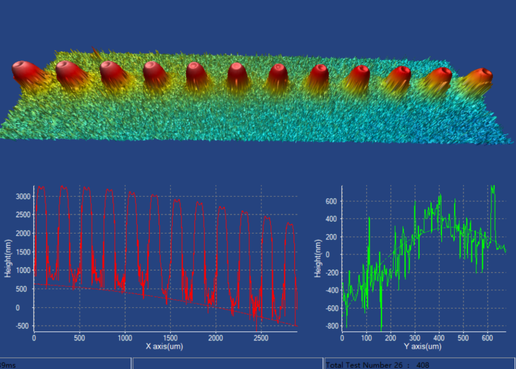 The device incorporates precision optical design and advanced 3D reconstruction algorithms to achieve exceptionally clear imaging results. After each test, it generates ultra-high-resolution 3D color maps, 2D color maps, cross-sectional profiles, and fitting graphs.